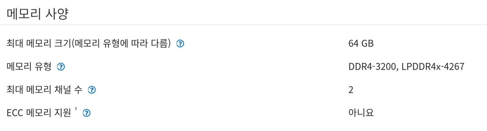 기본 DDR4-2666이 장착되어 있어서 DDR4-2666으로 구매해야할지 DDR4-3200으로 구매해야 할지 고민하다가 i5-1135G7 CPU가 DDR4-3200도 지원하기에 DDR4-3200으로 구매했습니다.