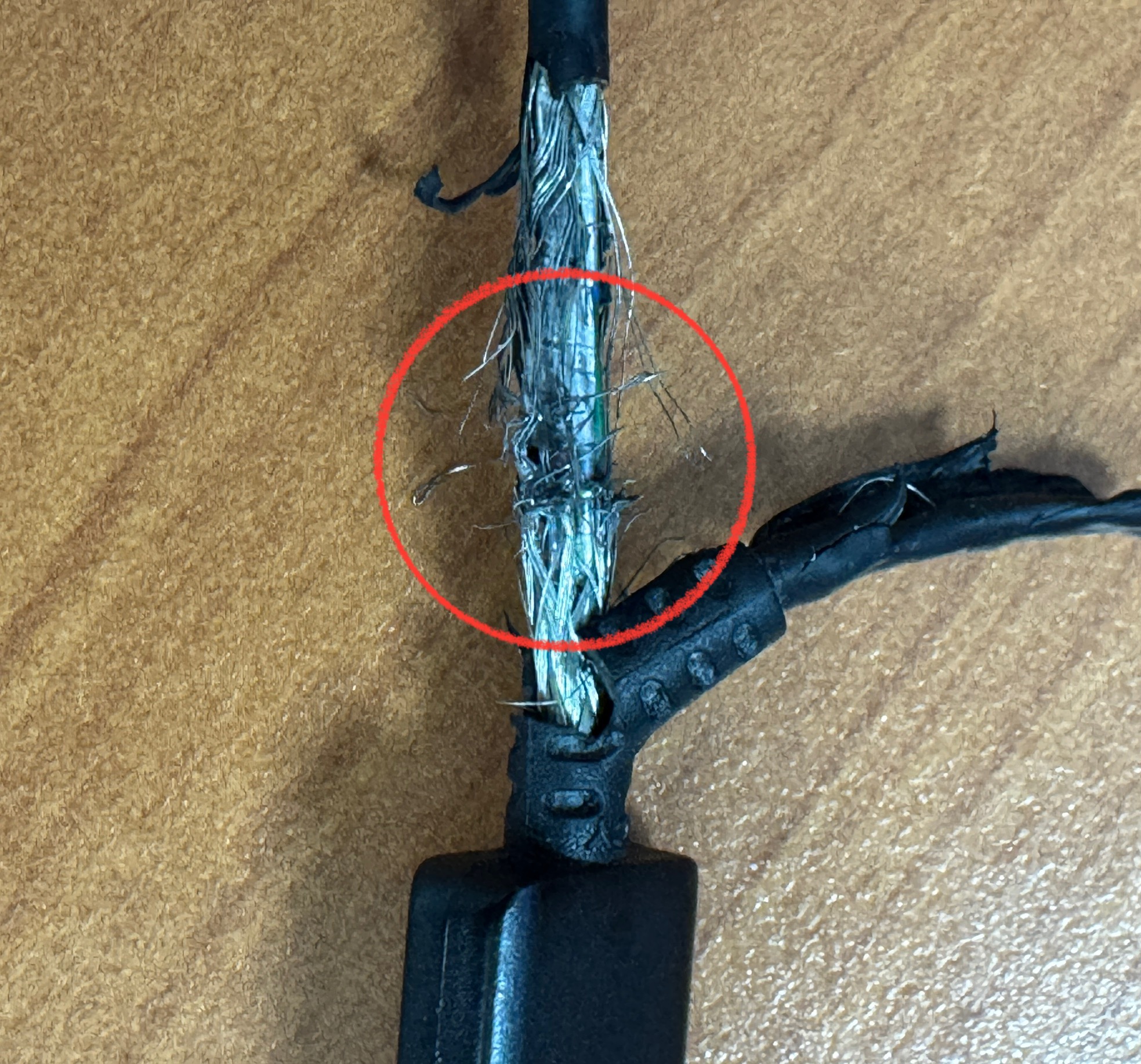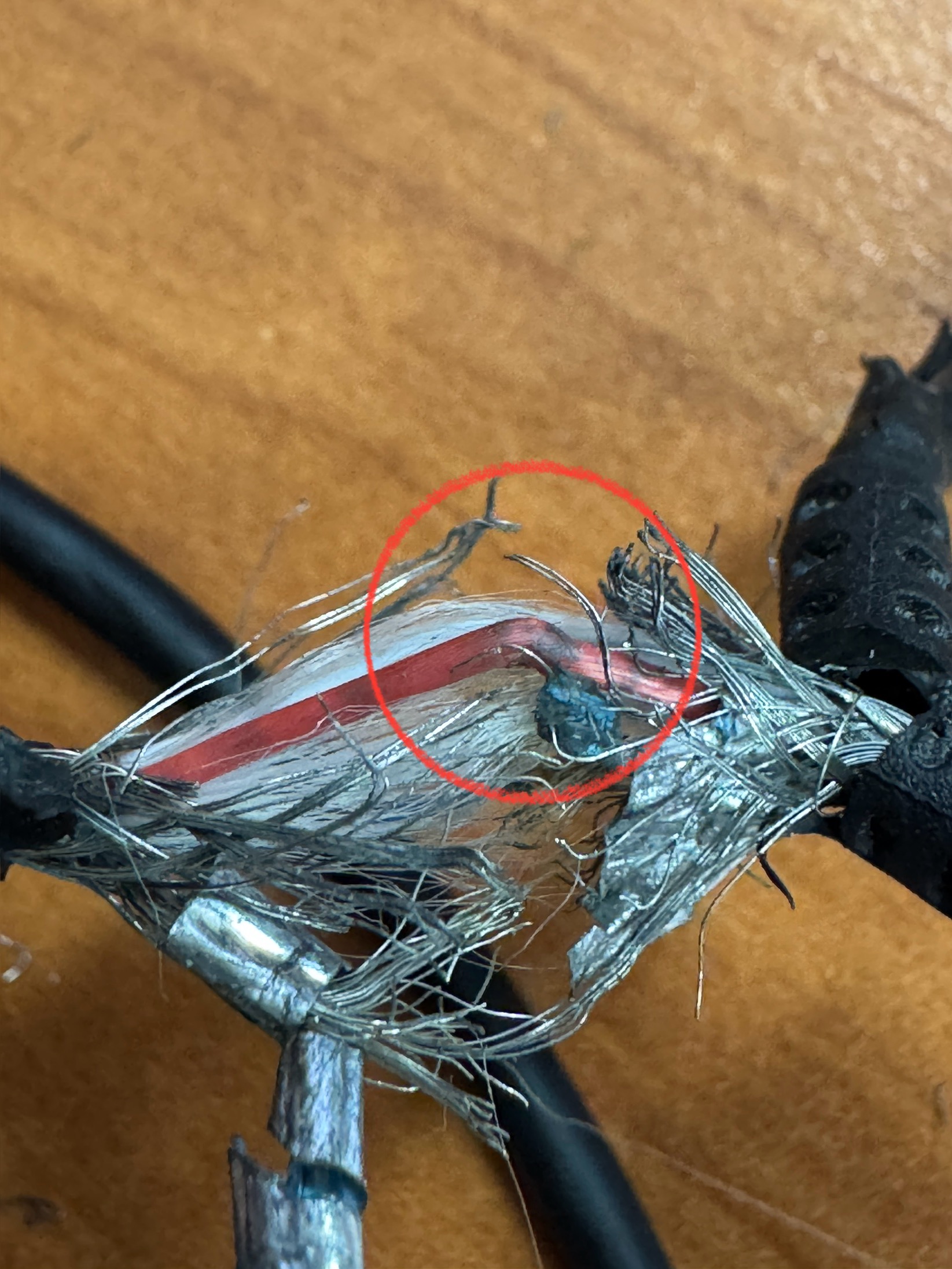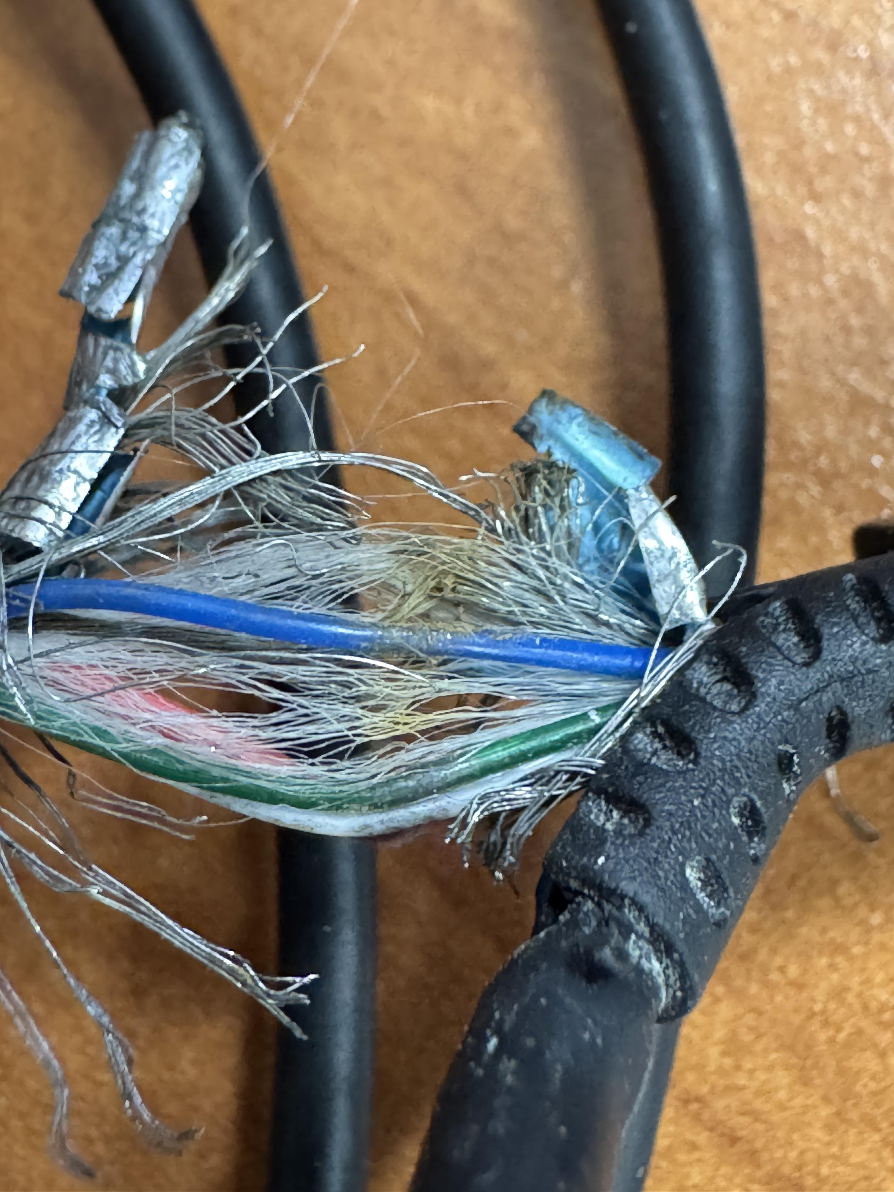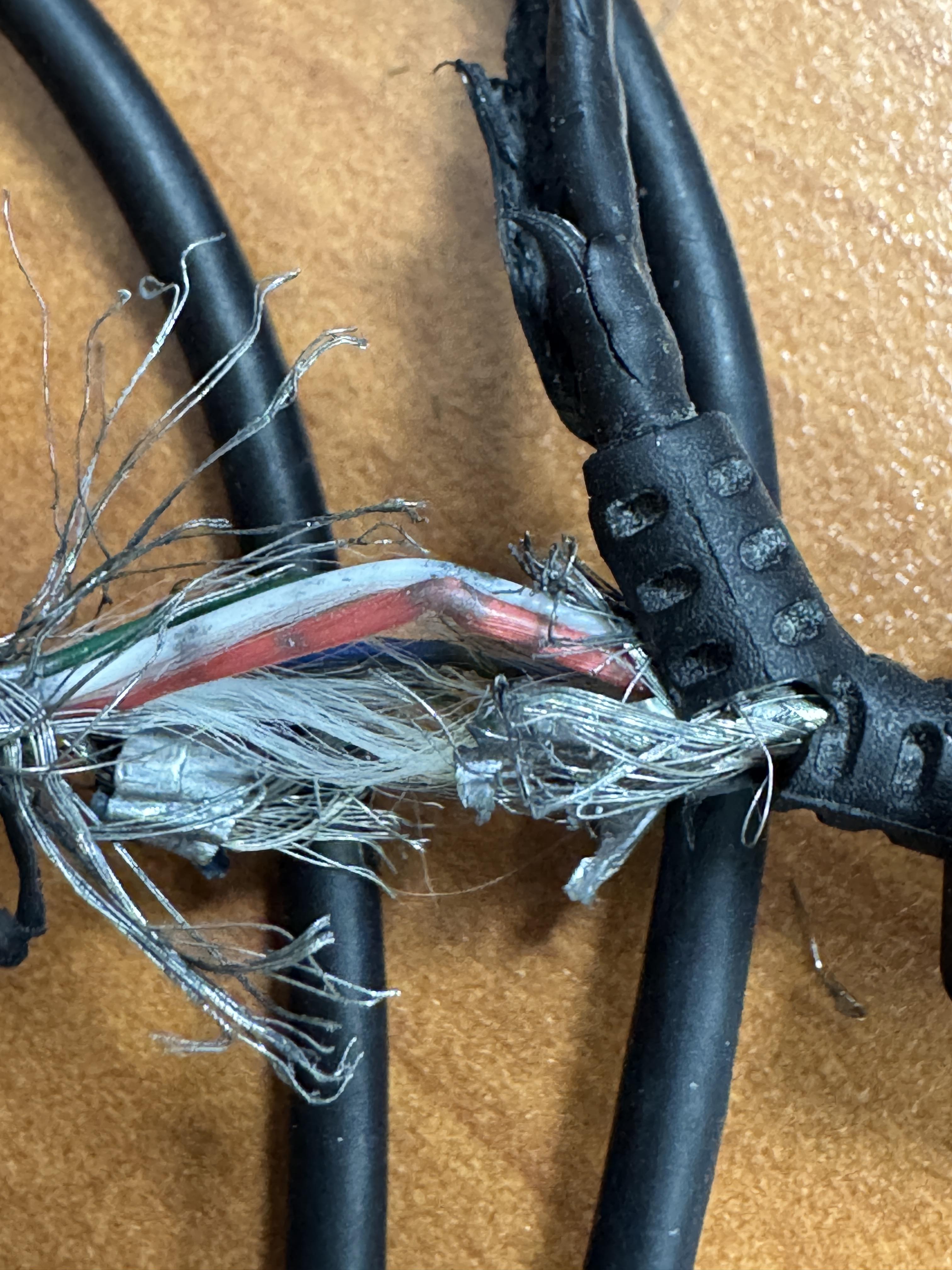 쉴드를 제거해보니 아래 사진처럼 케이블을 그을린 것을 발견했습니다.