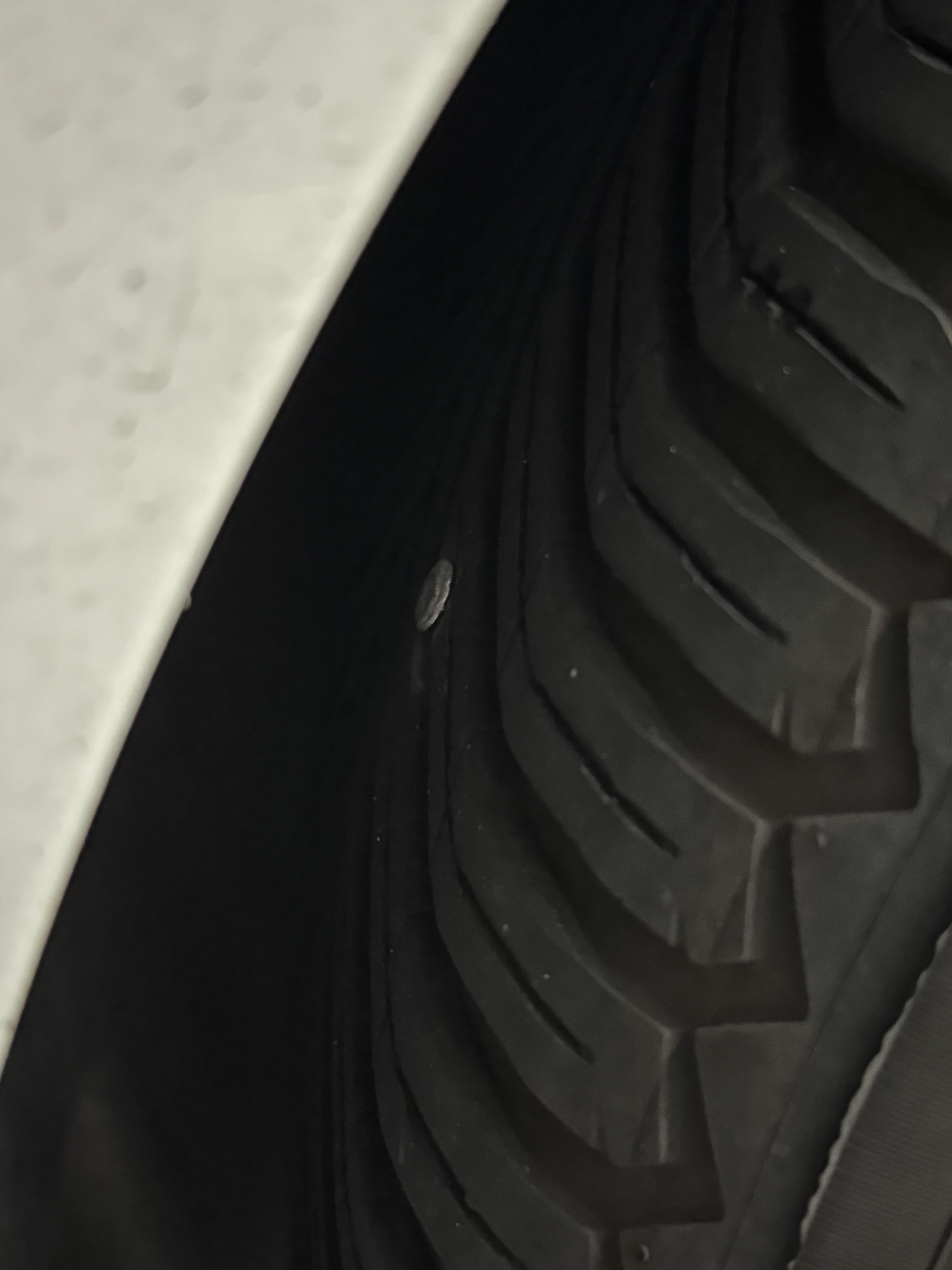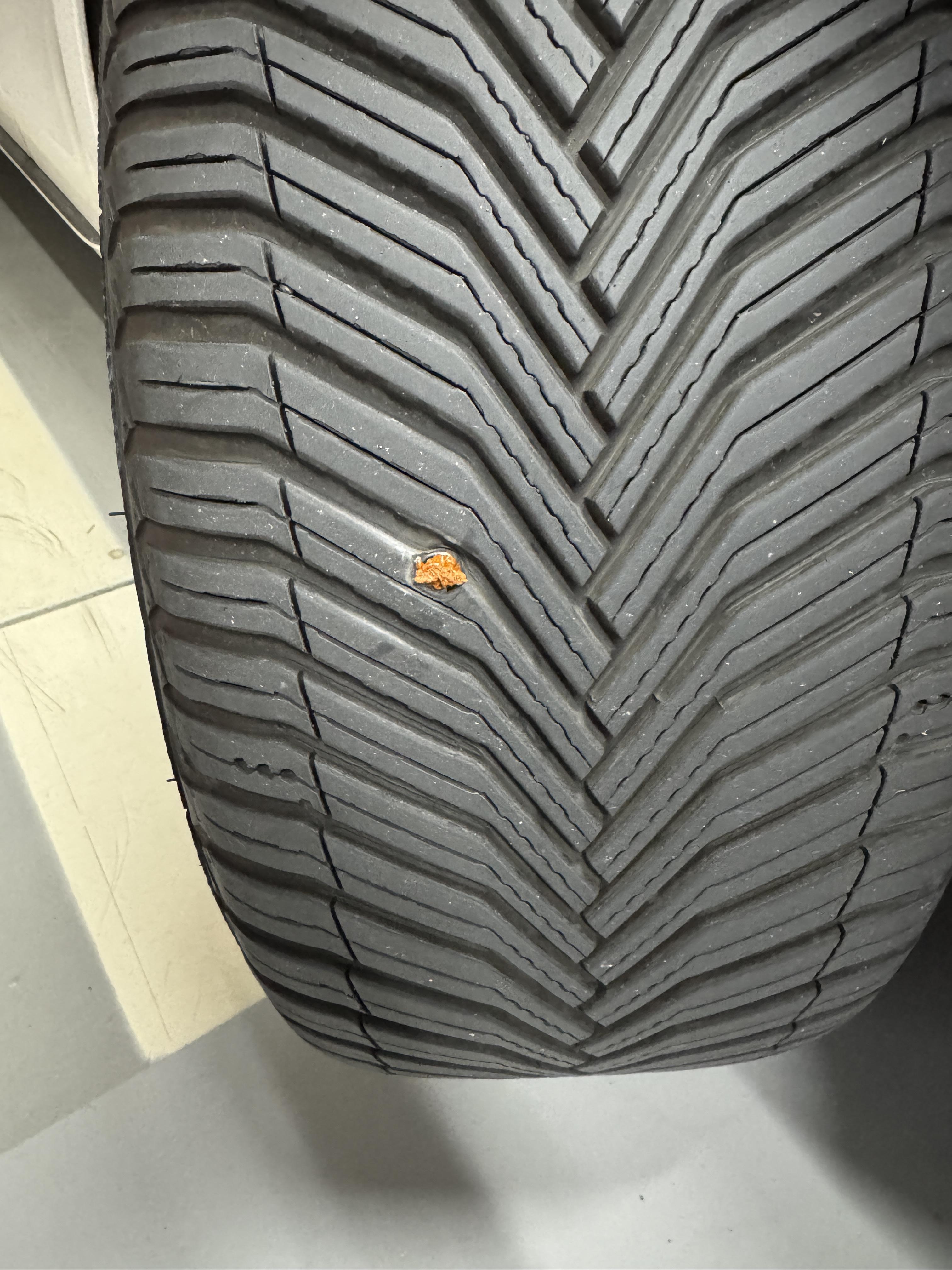 타이어 공기압 경고가 떠서 타이어를 살펴보니 나사못이 하나 박혀 있었습니다.