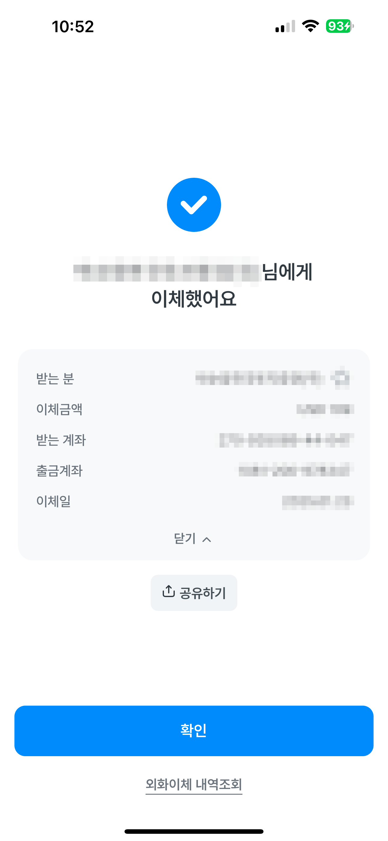 이체가 정상적으로 이루어 졌습니다.