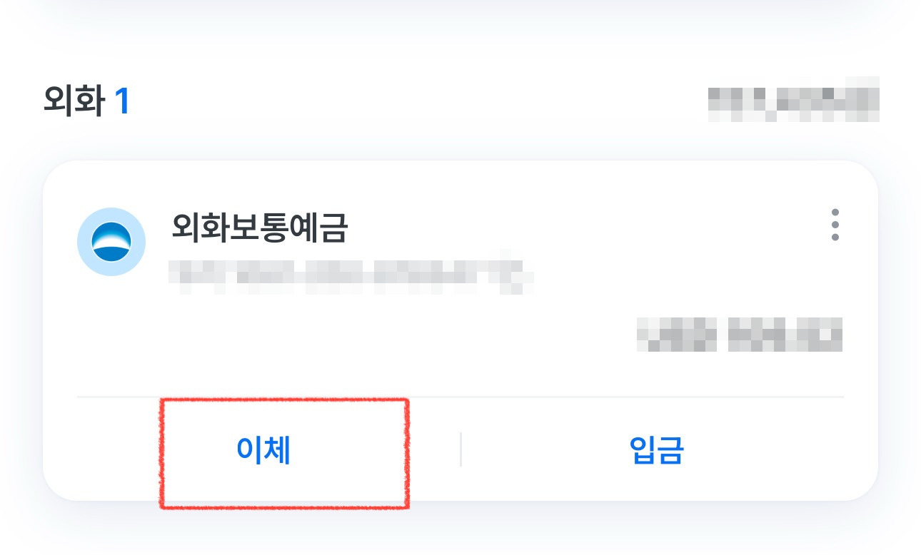 이제 "우리WON뱅킹" 앱을 엽니다. 외화 계좌에서 "이체"를 탭해줍니다.