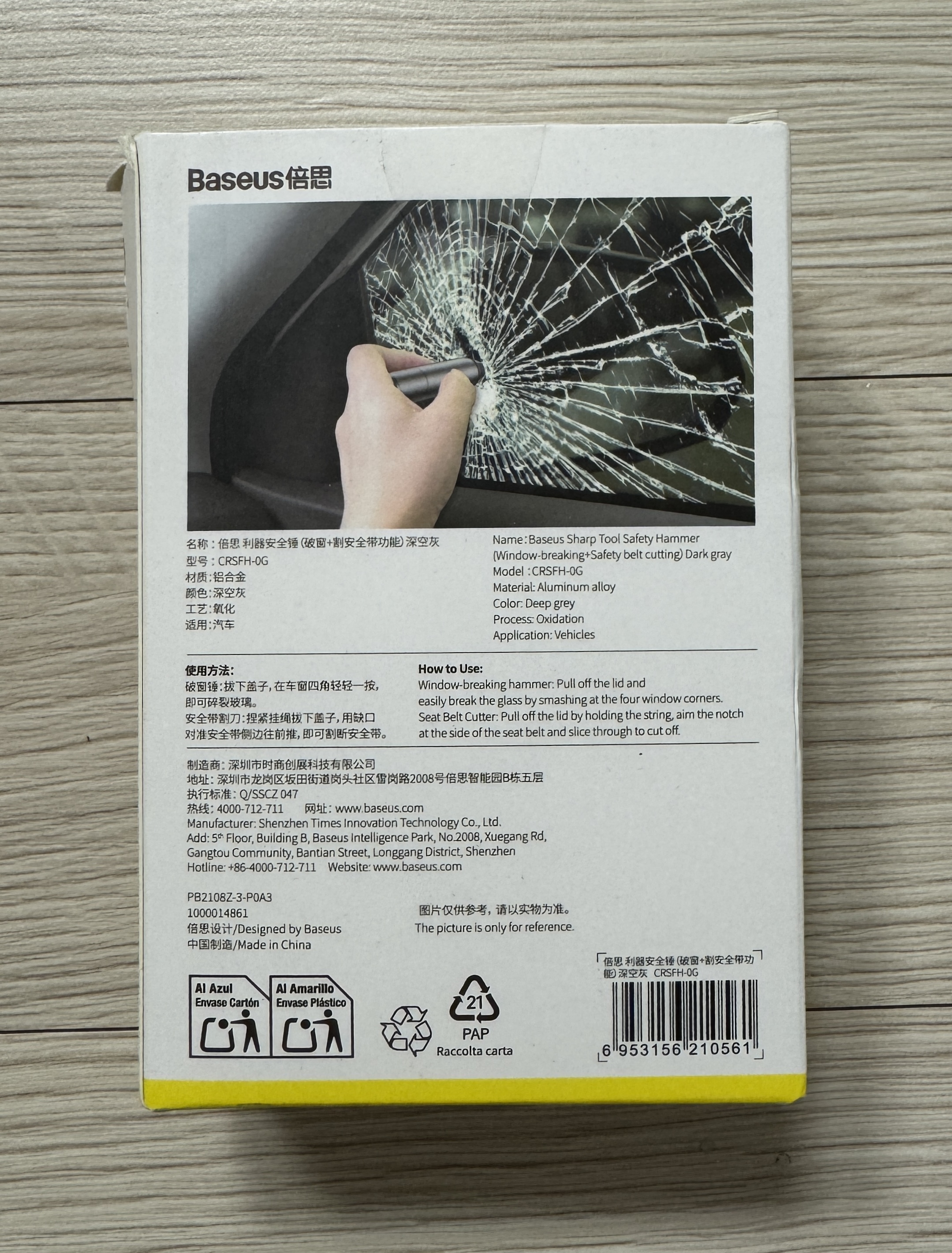 제품의 양쪽 뚜껑을 열어보면 한쪽은 안전 벨트를 자를 수 있는 칼날이 있습니다.