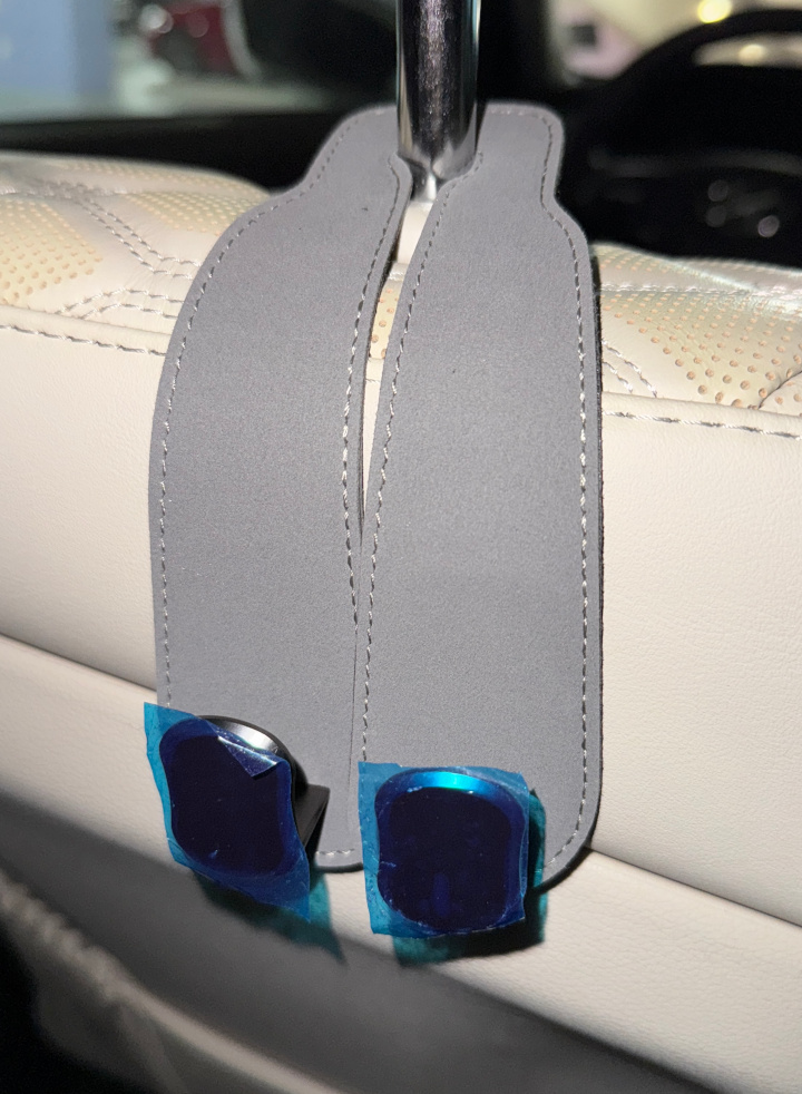 헤드레스트 지지대에 아래 사진 처럼 거는 형태로 설치합니다.