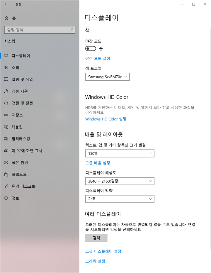 3840x2160 60Hz 가 제대로 설정된 것을 볼 수 있습니다.