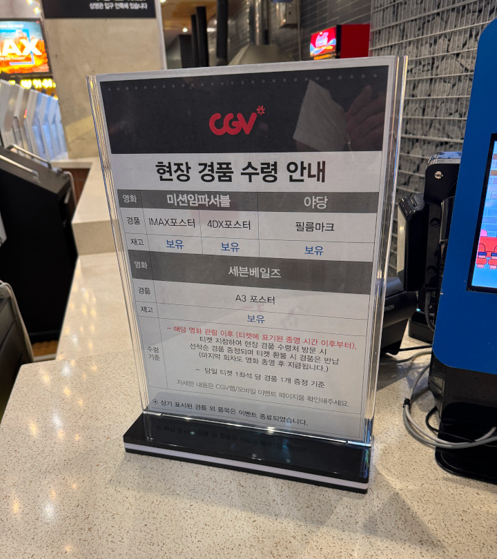 상영관마다 재고 여부를 확인하는 방법을 알려드리겠습니다.