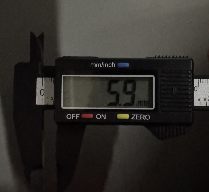 버니어캘리퍼스를 타이어 트레드 면에 수직으로 세우고, 뒷쪽 막대를 이용해 쉽게 측정할 수 있습니다.