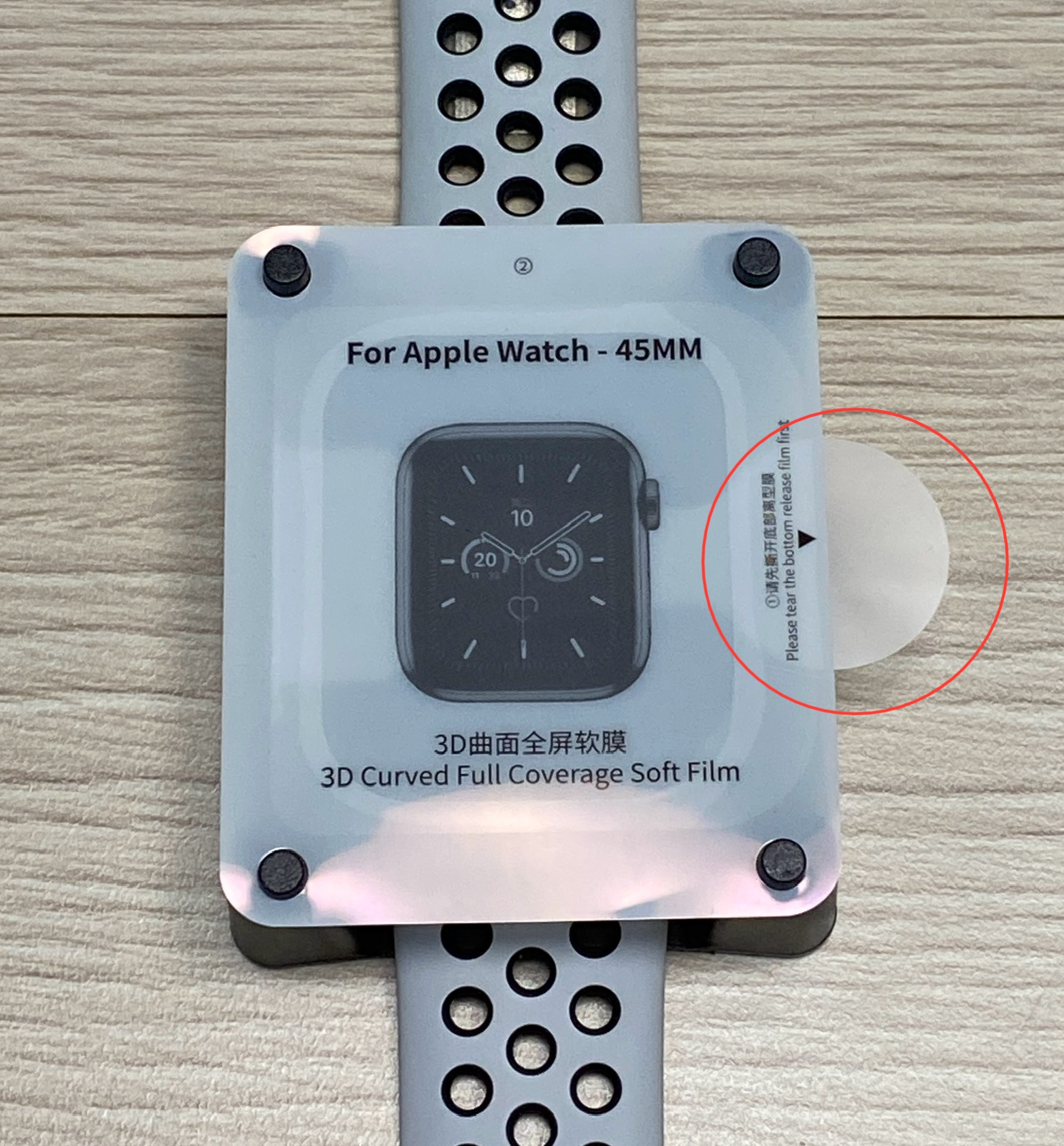 애플워치는 가장자리가 곡면인데, 위 사진 상태에서 그 부분까지 필름을 완전히 부착 시키기는 쉽지 않습니다.
