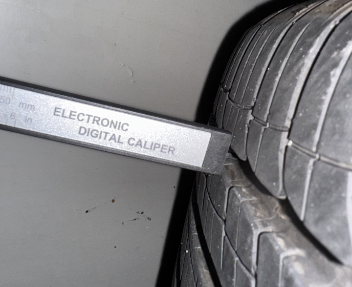 교환 전 타이어 마모 상태는 아래와 같습니다. 정확하게 확인하려고 버니어캘리퍼스로 측정했습니니다.