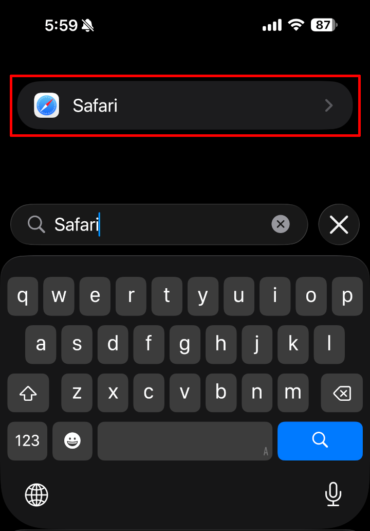 다음은 모든 사이트에 대해서 적용하는 방법입니다. 설정앱에서 Safari 를 검색합니다.
