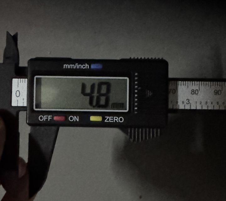 버니어캘리퍼스를 타이어 트레드 면에 수직으로 세우고, 뒷쪽 막대를 이용해 쉽게 측정할 수 있습니다.
