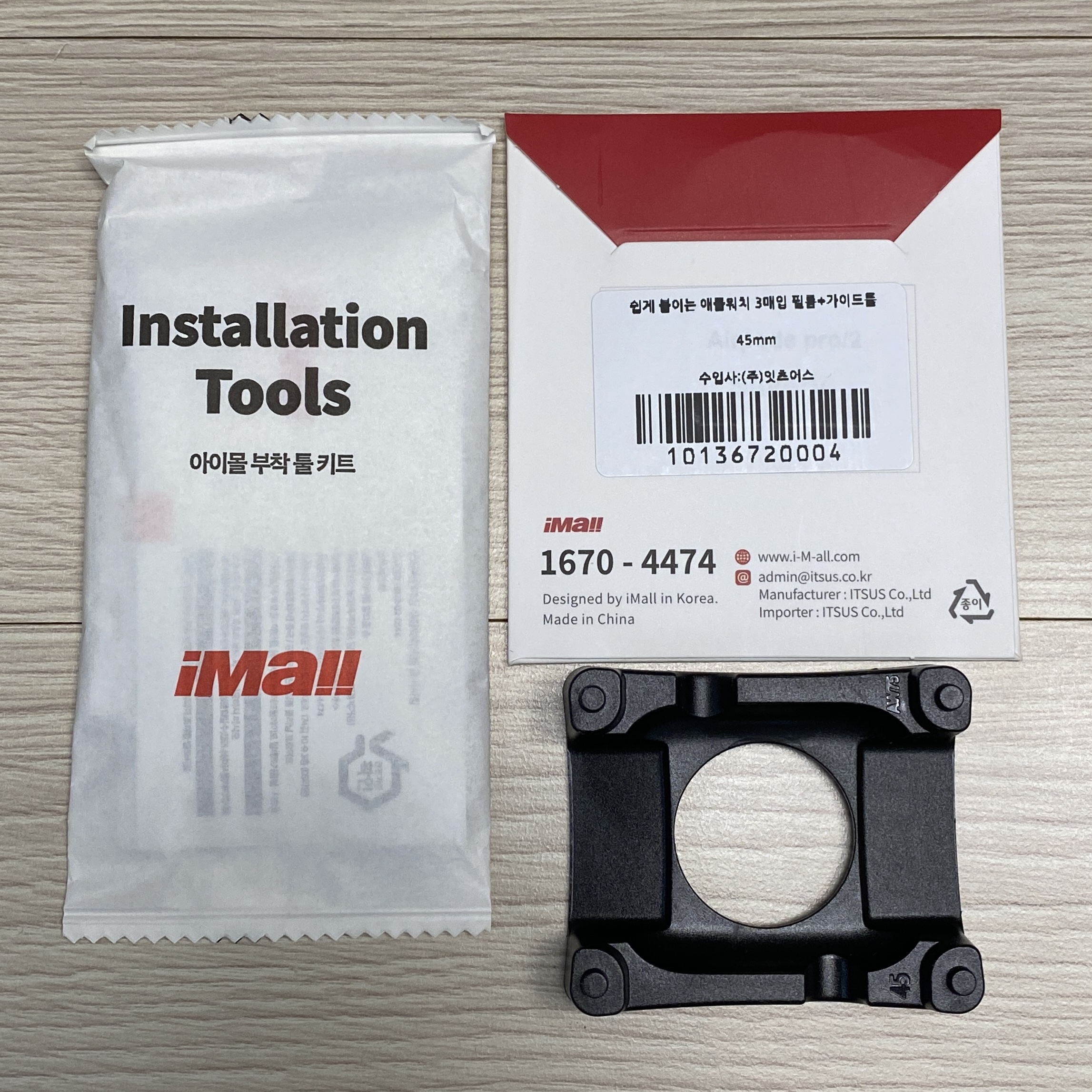 45mm 제품이고, 부착용 키트, 필름 3매와 부착 가이드 이렇게 포함되어 있습니다.