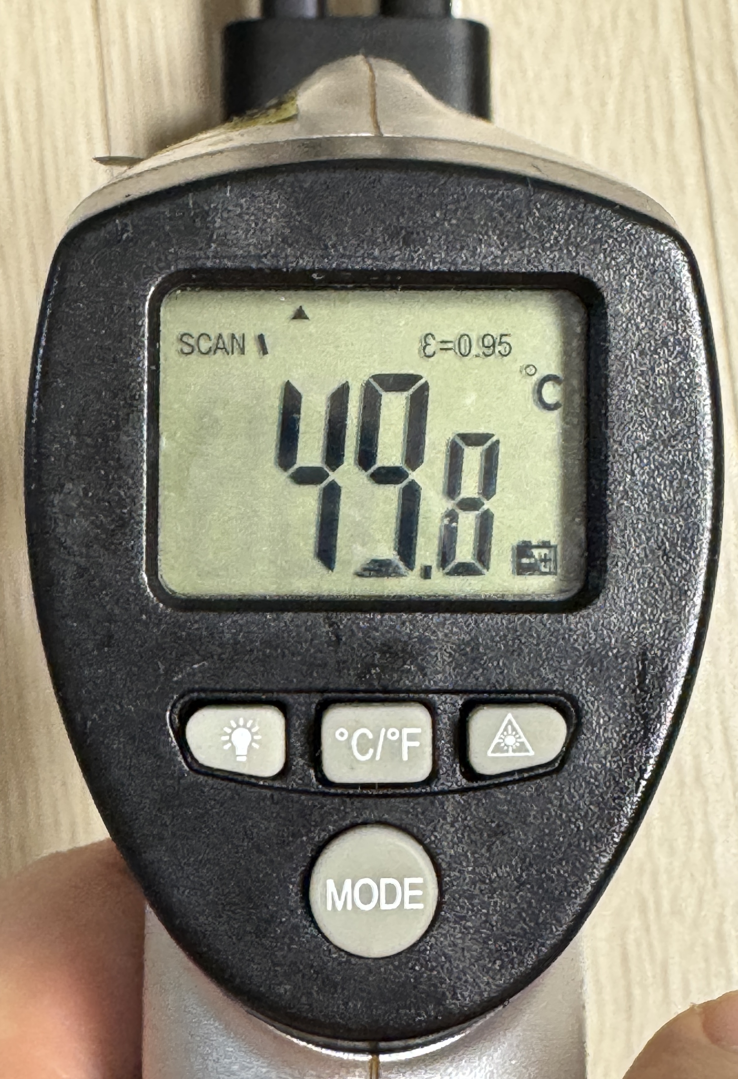 USB-C 포트를 이용해 아이패드와 아이폰을 동시에 충전해보았습니다. 충전 중 표면 온도를 체크해보니 약 45~50°C 정도를 유지하더라고요.