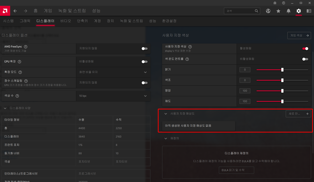 화면이 검게 꺼졌다가 다시 켜지고, 아래 사진처럼 사용자 해상도가 추가된 것을 볼 수 있습니다.